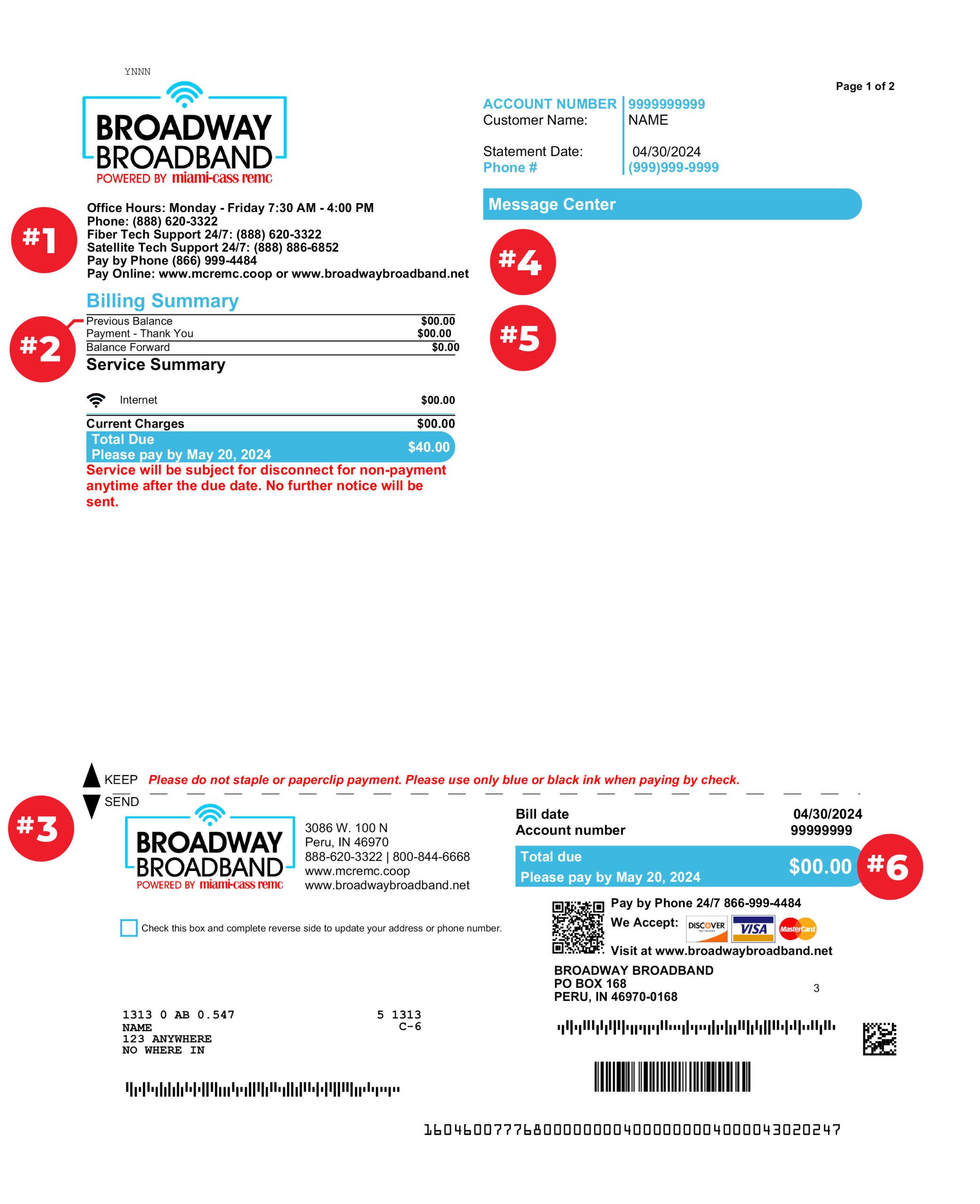 If your account is past due, a statement will appear indicating that payment must be received in our office immediately to keep your electric service connected.